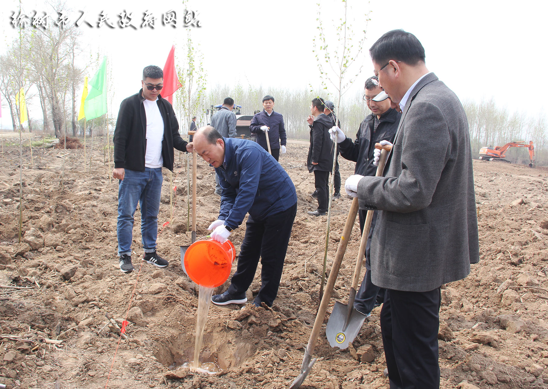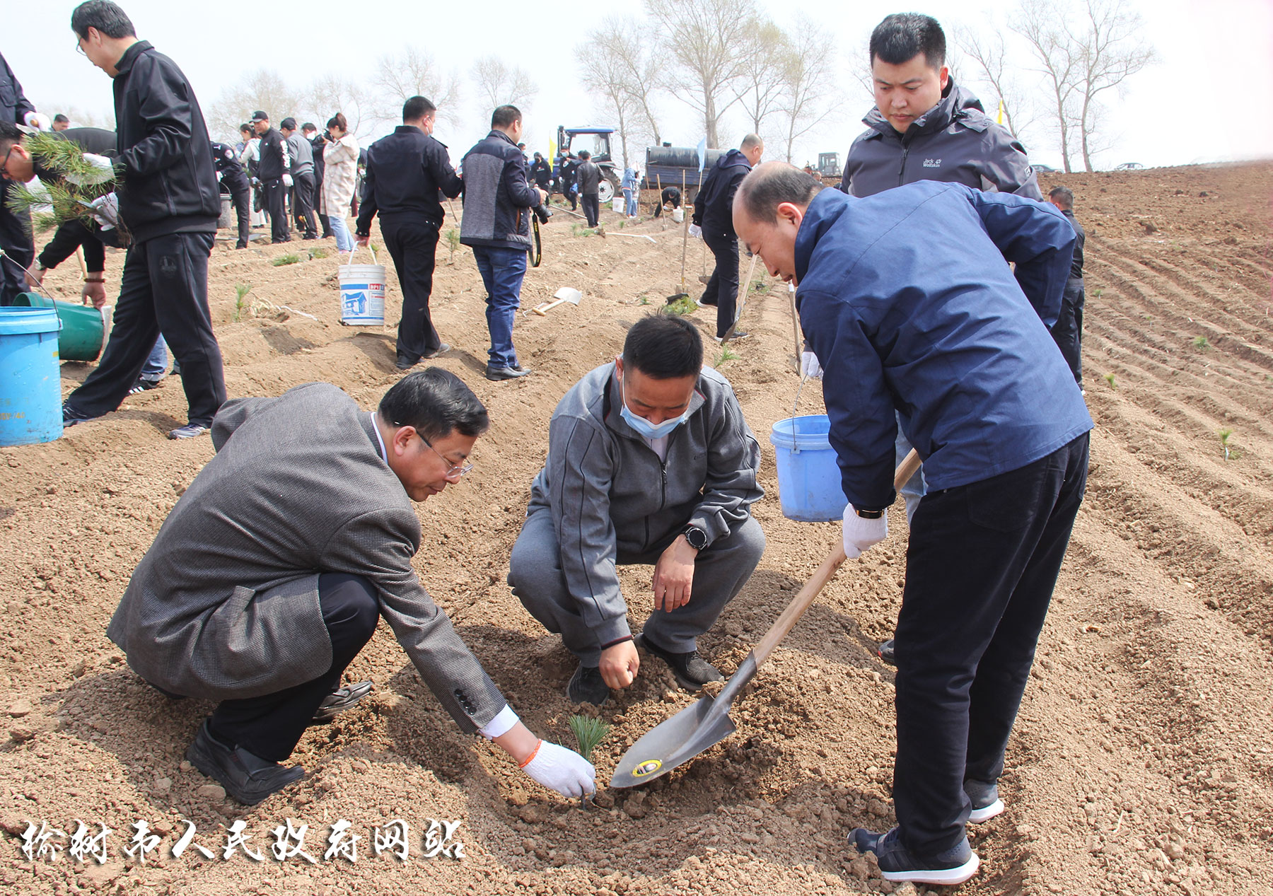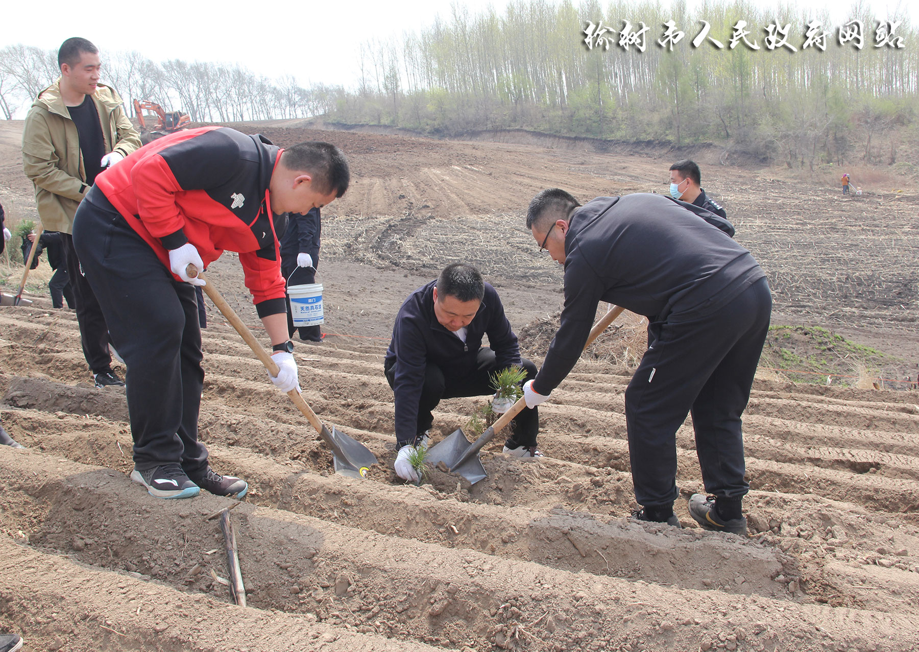 在植树现场,吴喜庆、闫伟、毕科明与大家一同植起树来,手拿铁锹,铲土挖坑,种树浇水,培土压实,分工明确,配合默契,现场呈现出一派热火朝天的劳动场面。植树过程中,吴喜庆等领导不时与林业局干部交流,对苗木的种类,生长周期等情况进行了解,并叮嘱相关人员要做好栽植苗木的后期管护工作,确保种植一片成活一片绿化一片,为建设大美榆树做出应有的贡献。