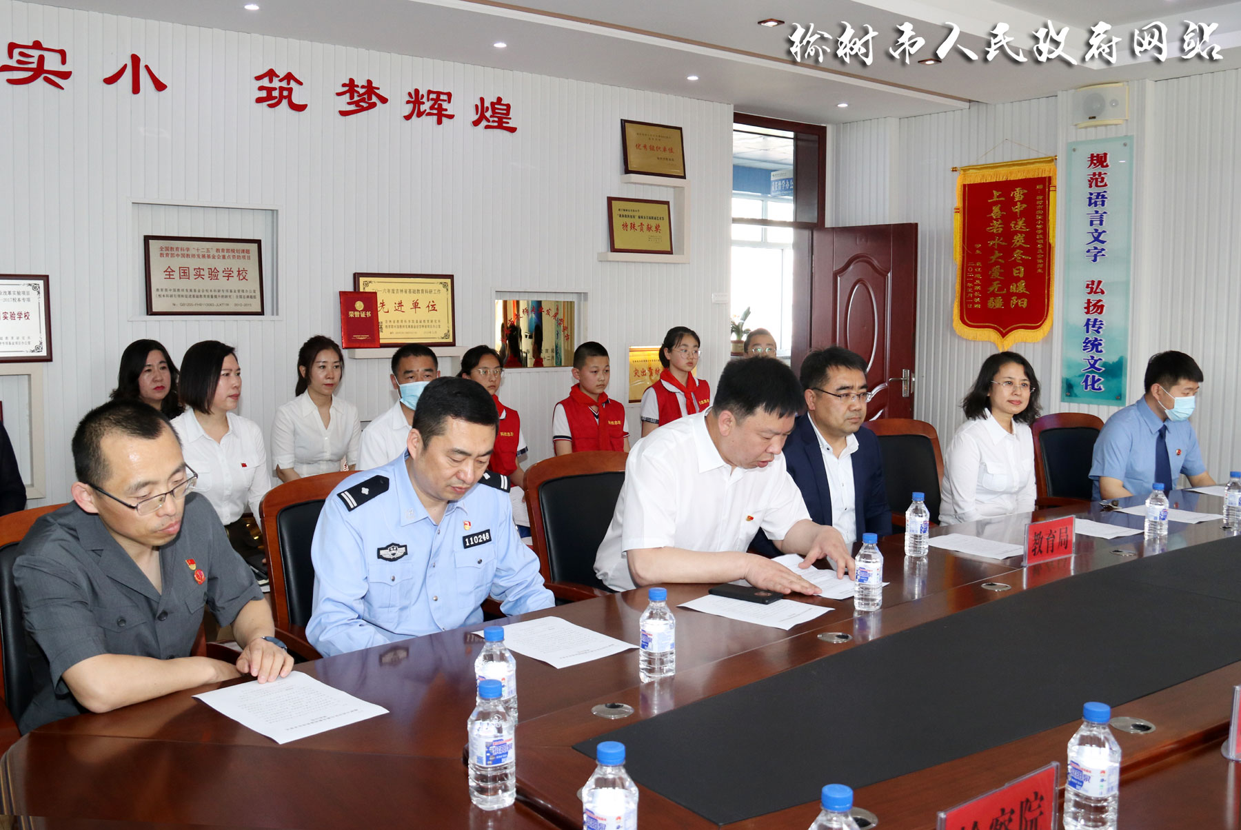 为进一步推动政法队伍教育整顿走深走实,坚持“开门搞整顿”,推动法治文化走进校园,帮助校园、教师、学生研究解决教育教学、校园安全、法治文化、周边乱象等实际问题,5月19日,市政法队伍教育整顿领导小组办公室组织市法学会会员、律师,政法系统公安、法官、检察官等走进市实验小学,开展为民实践活动之“平安法治校园行”活动。市委常委、政法委书记、市政法队伍教育整顿工作领导小组副组长兼办公室主任吴喜庆,市法院院长、市政法队伍教育整顿领导小组副组长房国华出席活动。