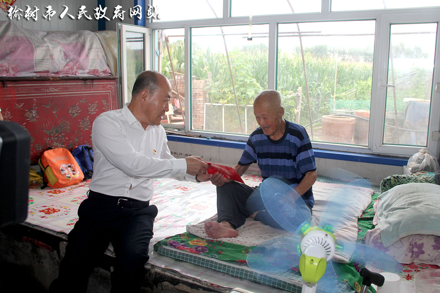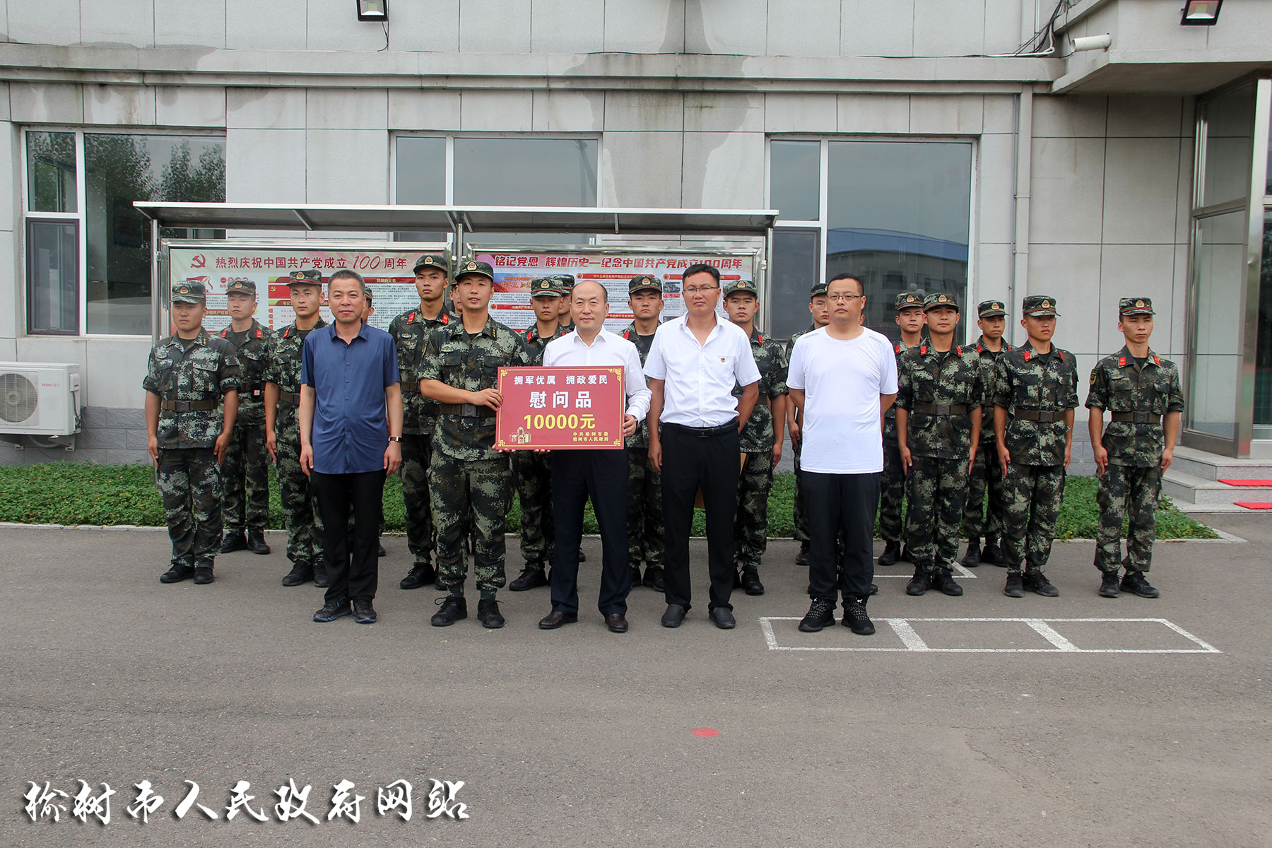 为弘扬我市拥军优属光荣传统,巩固坚如磐石的军政军民关系,在“八一”建军节来临之际,7月29日,市委常委、政法委书记、长春五棵树经济开发区党工委书记吴喜庆走访慰问了驻榆武警中队和优抚对象王柱,送去了慰问金以及节日的祝福和问候。