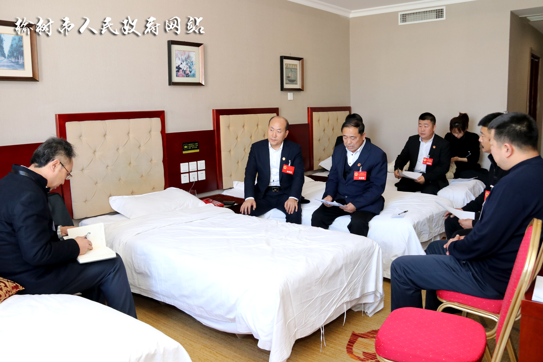 11月24日—25日,吴喜庆、闫伟、杨冬侃、徐志刚、赵俭、王德权、李中萍、徐阁、王百陆、王树申、马光辉、王海艳、孙跃福及市法院院长房国华、市检察院检察长毕科明深入各代表团,与出席榆树市第十九届人民代表大会第一次会议的人大代表共同审议政府、人大、法院、检察院工作报告,并听取代表们的意见和建议。