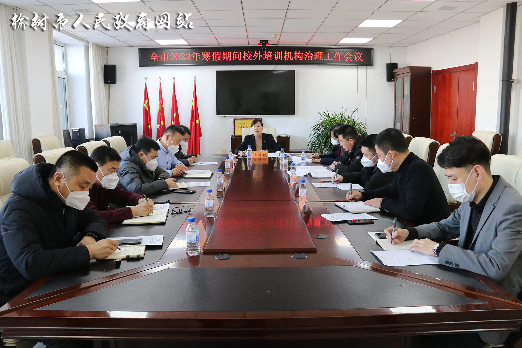 1月16日,全市2023年寒假期间校外培训机构治理工作会议在市行政中心小会议室召开,会议的主要任务是按照省和长春市工作要求,安排部署我市2023年寒假期间校外培训治理工作。副市长王海艳出席会议。