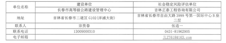 根据《国家发展改革委关于印发国家发展改革委重大固定资产投资项目社会稳定风险评估暂行办法》改投资[2012]2492号)及《国家发展改革委办公厅关于印发重大固定资产投资项目社会稳定风险分析篇章利评估报告编制大纲(试行)》(发改办投资[2013]428号)要求,现将长春至榆树高速公路社会稳定风险评估进行公示,征求广大社会公众对该项目实施的意见和建议。