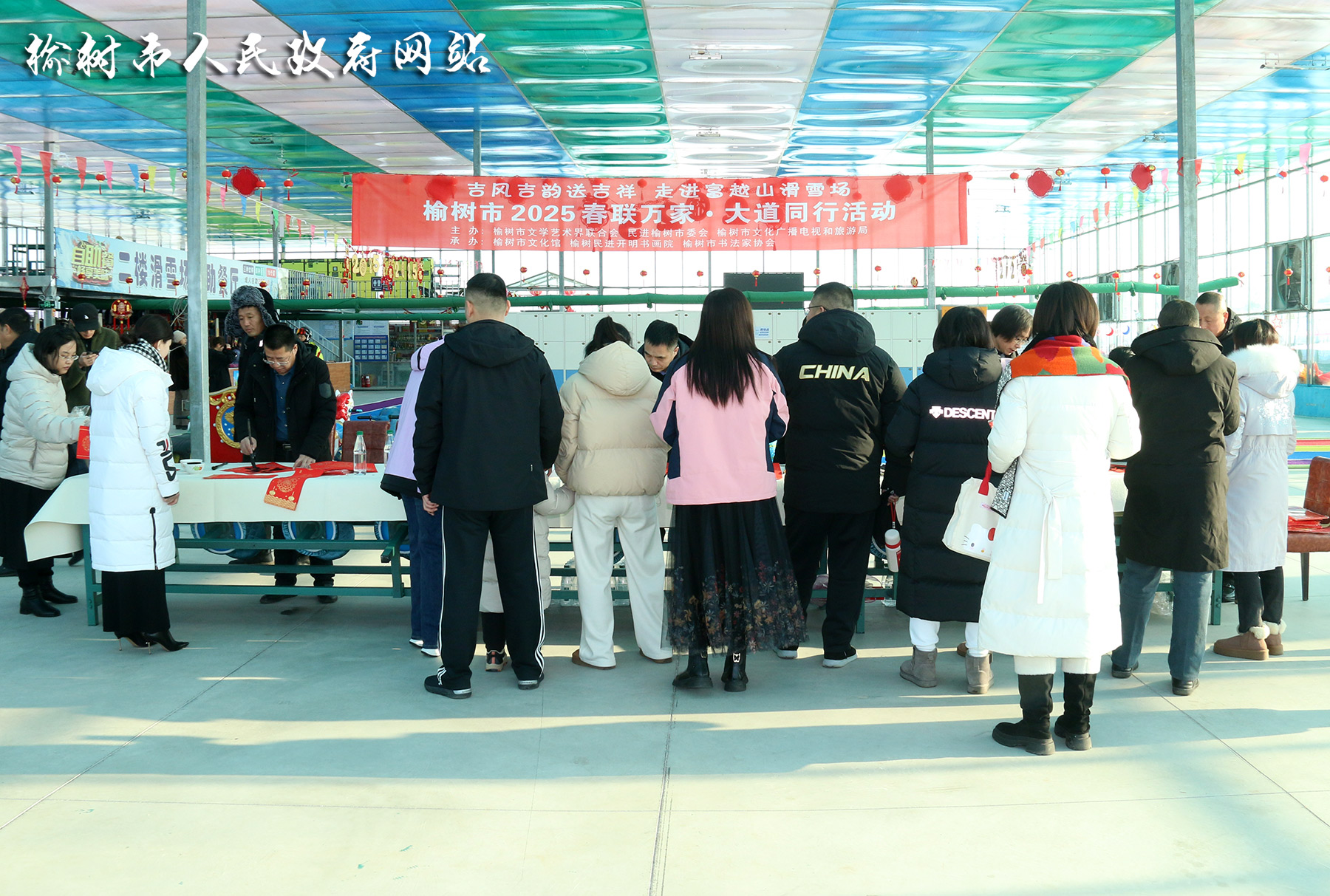1月1日,由市文联、民进榆树市委会、市文广旅局主办,市文化馆、榆树民进开明书画院、市书法家协会承办的2025春联万家•大道同行活动走进了富越山滑雪场。