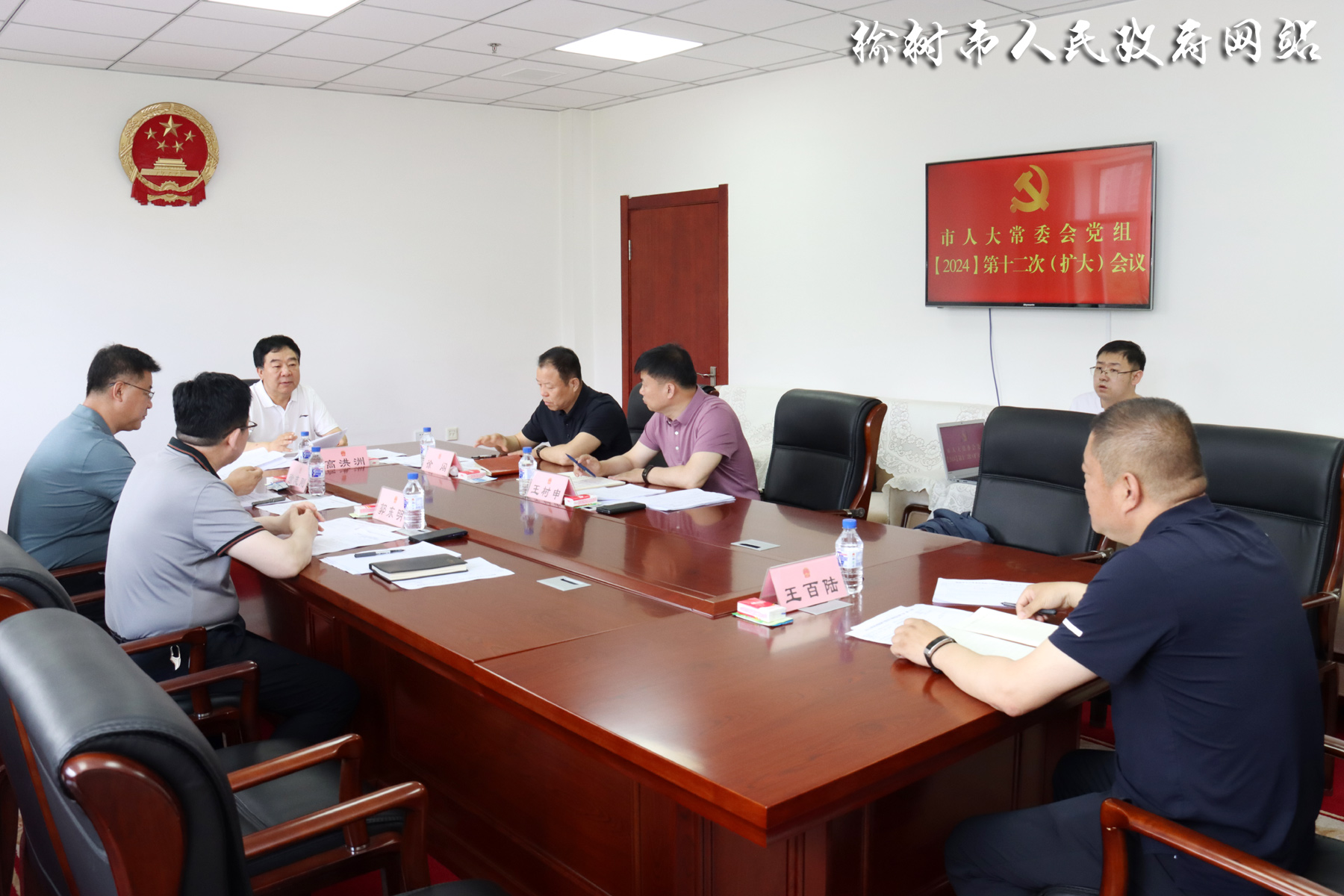 6月12日,市人大常委会党组书记、主任高洪洲主持召开市人大常委会党组2024年第12次(扩大)会议,市人大常委会党组副书记、副主任徐阁,市人大常委会党组成员徐志刚,市人大常委会党组成员、副主任王树申,市人大常委会党组成员、秘书长郭东明出席会议,市人大常委会副主任王百陆列席会议。