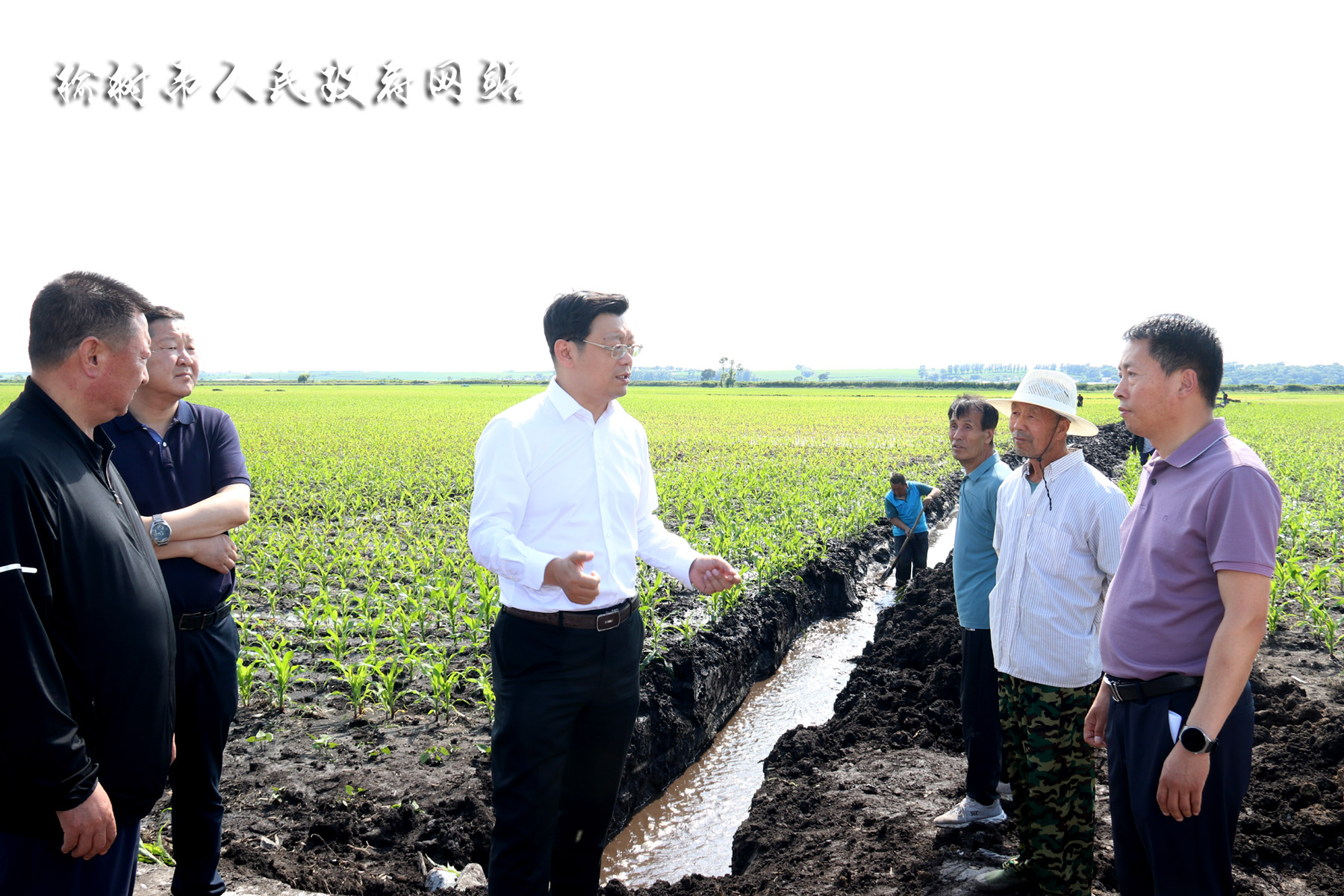 “农田积水面积多少?多久能排完?”在城发乡双合村和卡路村,部分低洼地块正在利用高标准农田排水渠进行排水。吴威走进田间地头,仔细查看玉米、水稻作物长势,与属地干部、种植户深入交流,认真听取有关工作汇报,询问了解农田排涝进展情况,并与相关负责同志研究积水抢排措施。吴威叮嘱属地和相关部门要深入排查农田积水情况,因地制宜制订排涝方案,分类施策全面打通堵点,有力有序开展排水作业。要加强积水农田管理,强化技术指导服务,最大限度保障农田不减产、农民不减收。