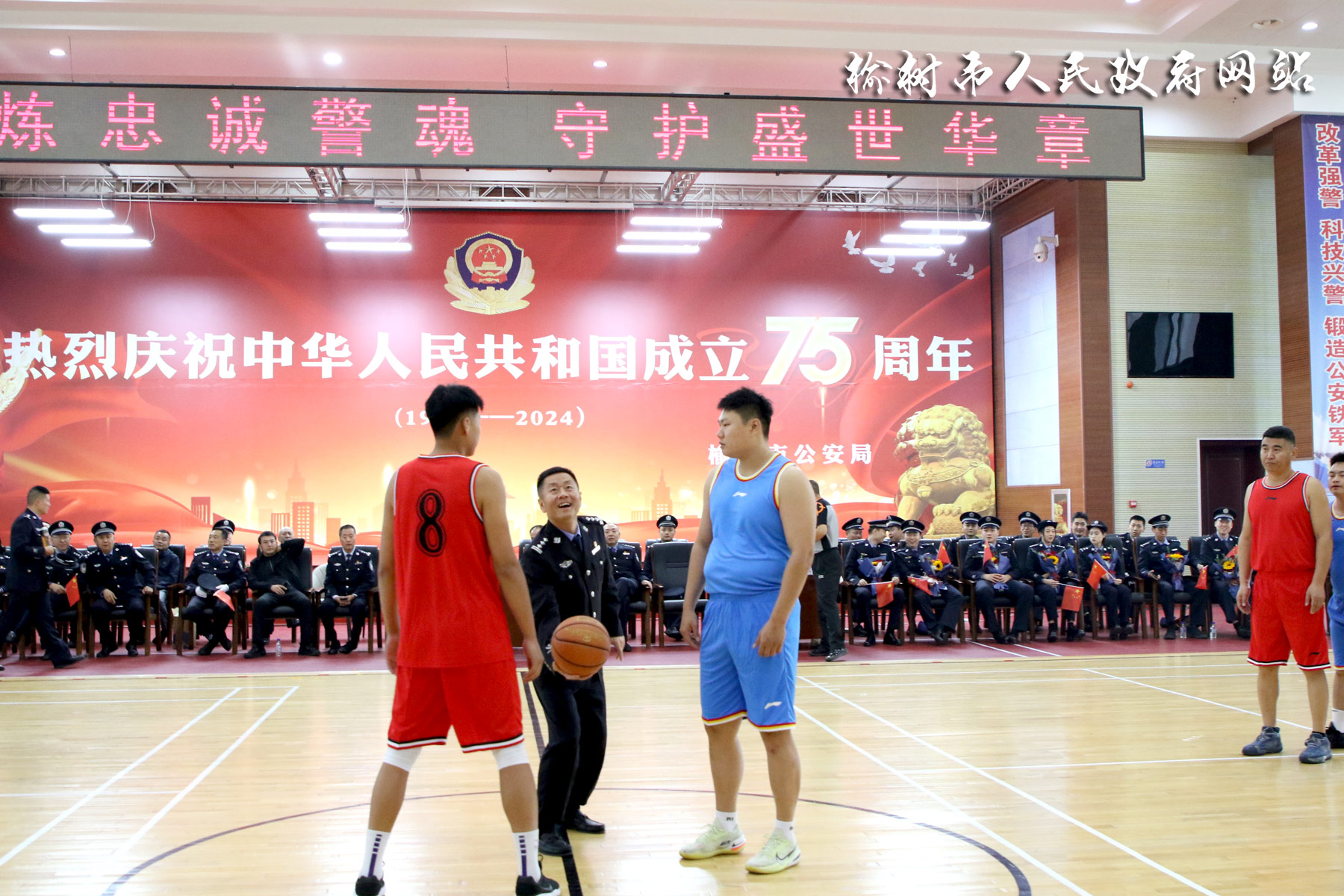 活动还开展了“红蓝对抗”篮球赛和精彩的文艺演出,全体民警共唱《歌唱祖国》,优美的旋律将活动推向高潮。